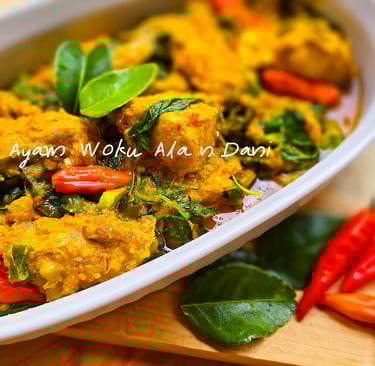 Ayam Woku merupakan masakan khas Minahasa, Sulawesi Utara yang dikenal dengan citarasa pedas dan bumbu full rempah aromatik. Konon katanya, kata “woku” berasal dari daun woka, sejenis daun palma yang dahulu digunakan untuk membungkus masakan. Kini, istilah “woku” merujuk pada cara memasak dengan banyak rempah segar—menghasilkan rasa yang kuat, harum dan khas.